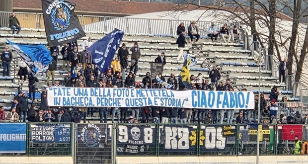 “Fate una bella foto e mettetela in bacheca. Perché questa è storia”. Lo splendido stricione esposto dai tifosi del Foligno al Lungobisenzio di Prato per omaggiare Fabio Luccioli, ricordando la mitica frase della sua radiocronaca nello spareggio salvezza (leggi il resto)